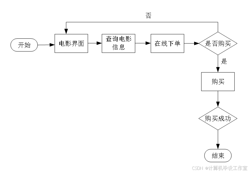 用户可以使用对电影进行购买,系统为用户提供了丰富的电影信息,用户可以浏览并选择心仪的电影,进行购买操作。购买流程图如图7所示。