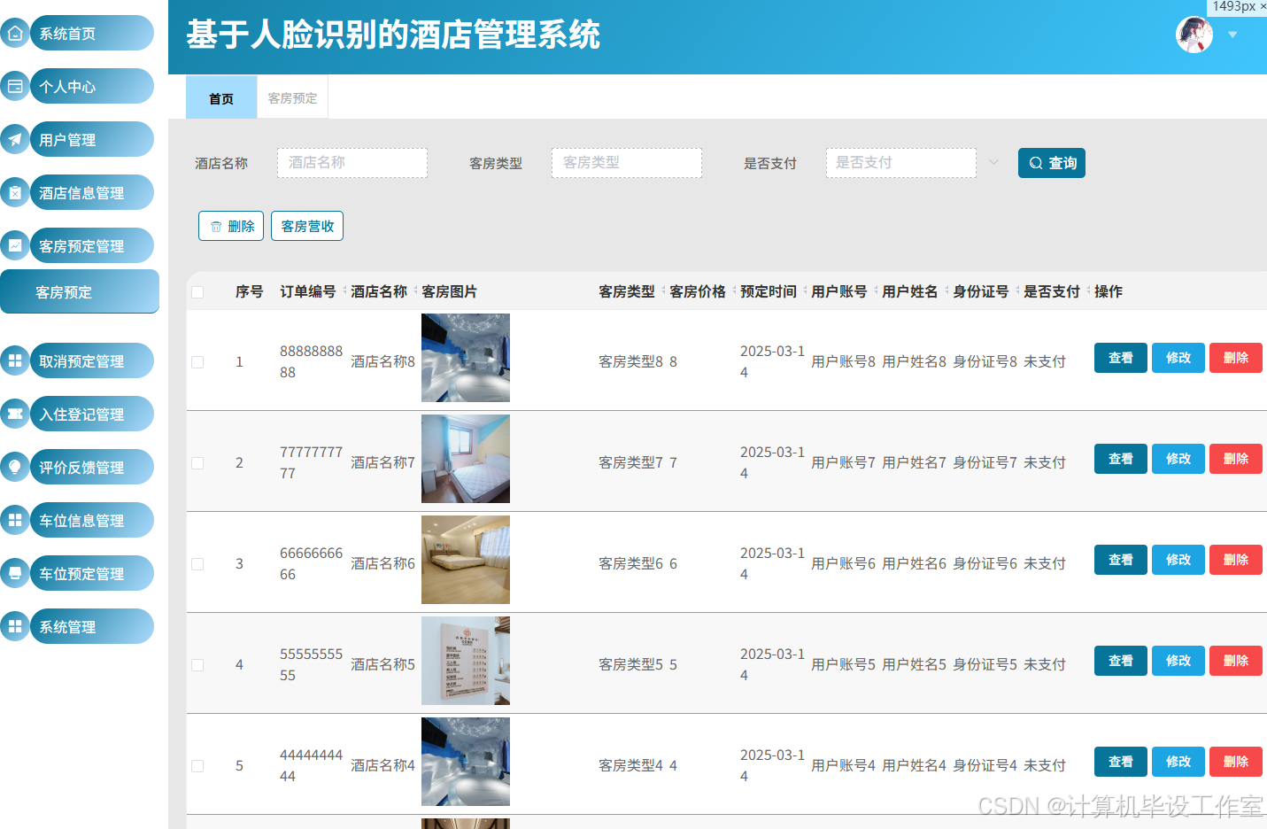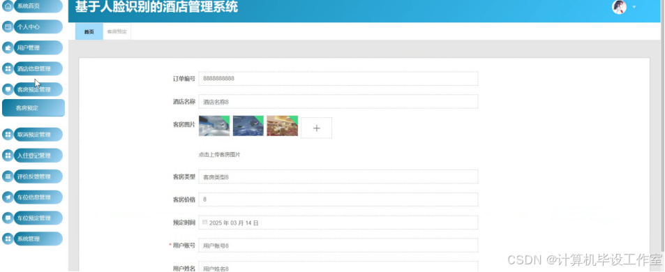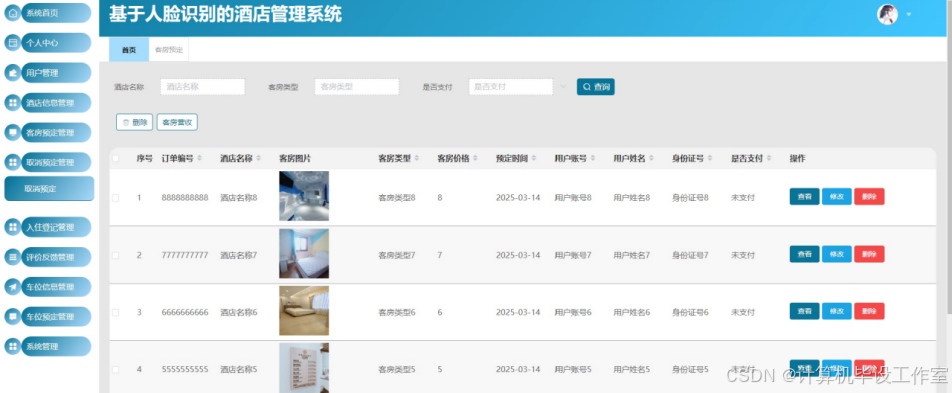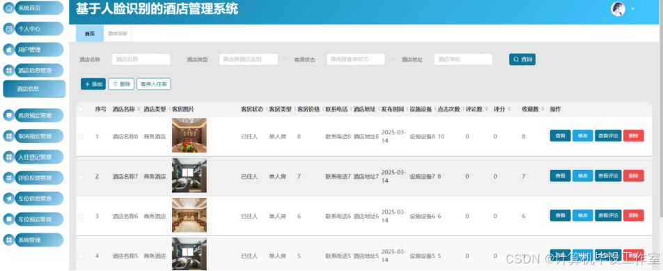 基于人脸识别酒店管理系统(源码+数据库+毕业论文+ppt)java开发springboot+vue框架javaweb,可做计算机毕业设计或课程设计