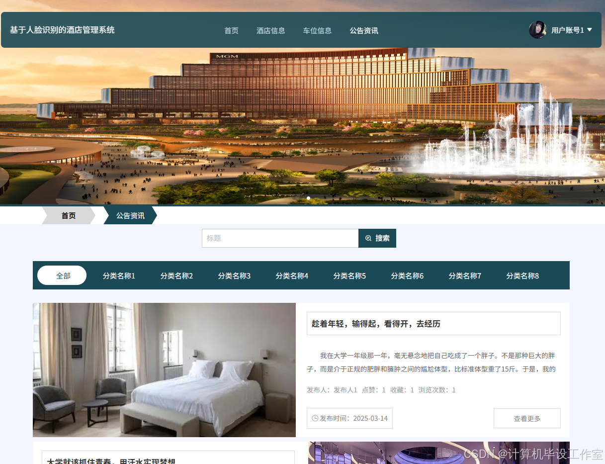 关键词:人脸识别;酒店信息;客房预订;Spring Boot框架