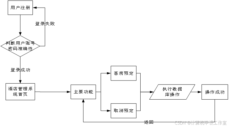 在基于人脸识别的酒店管理系统中,用户可以在查询完酒店客房信息后,可以对酒店的客房进行提交预定、或者取消预定操作,具体流程图如图3-5。
