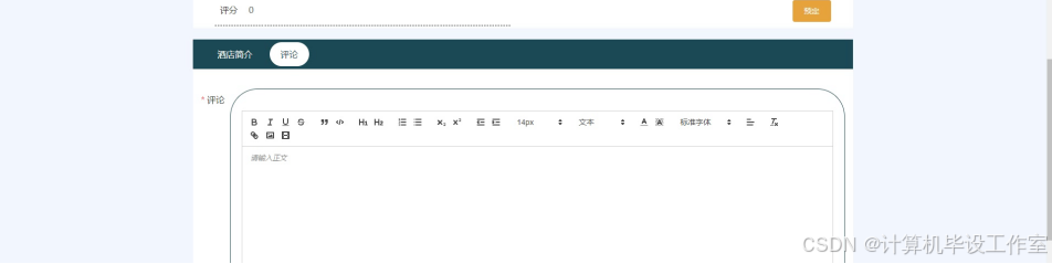 7.评价反馈:用户对于入住后可以就对酒店服务的评价意见反馈等信息进行编辑提交。