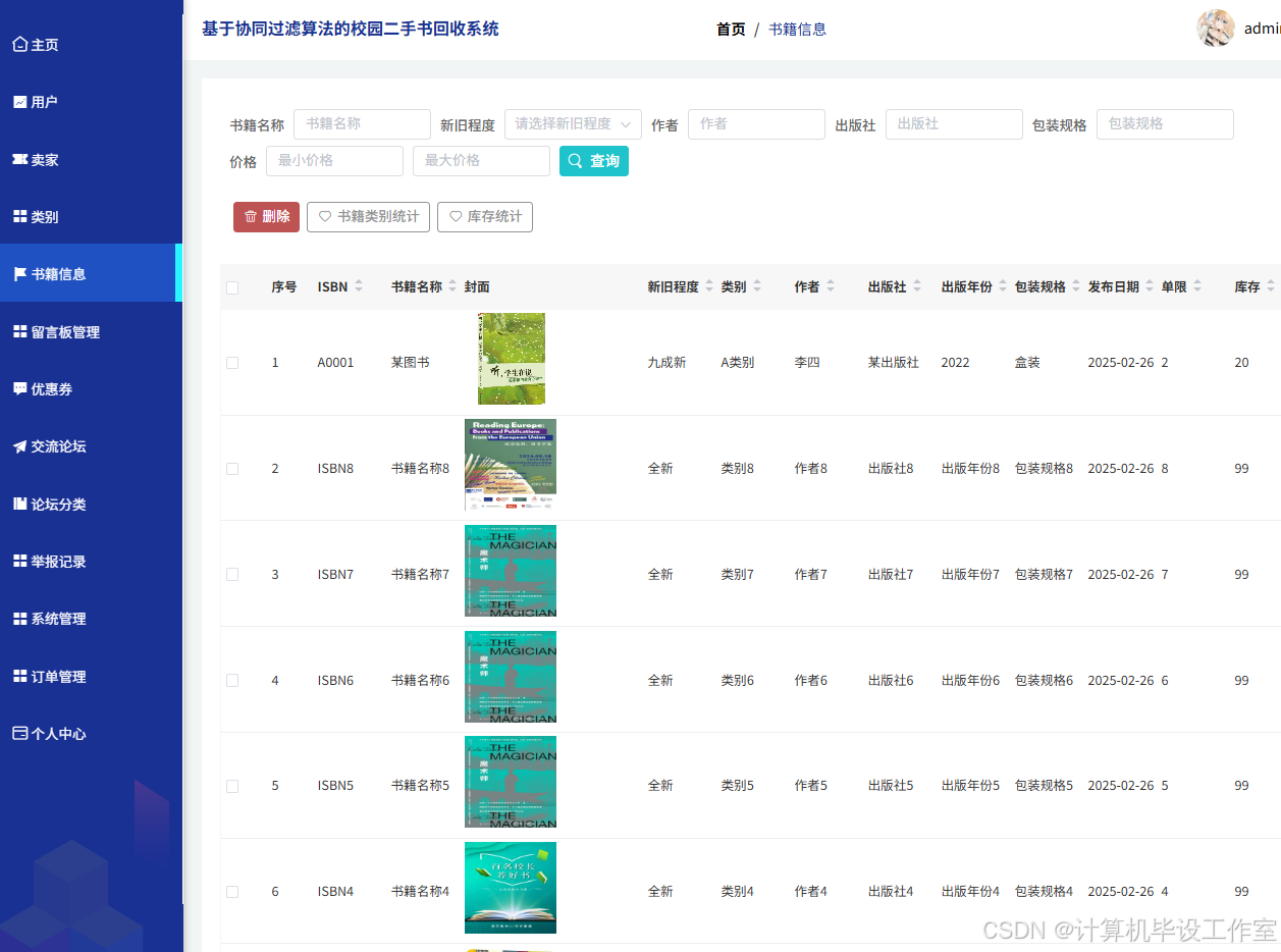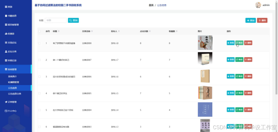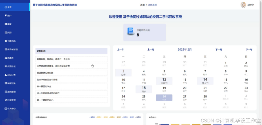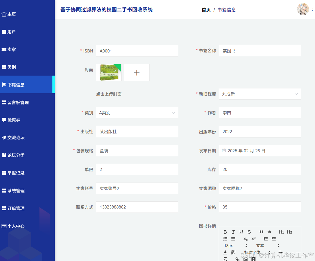 基于协同过滤算法的校园二手书回收系统(源码+数据库+毕业论文+ppt一整套齐全)java开发springboot+vue框架javaweb