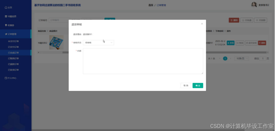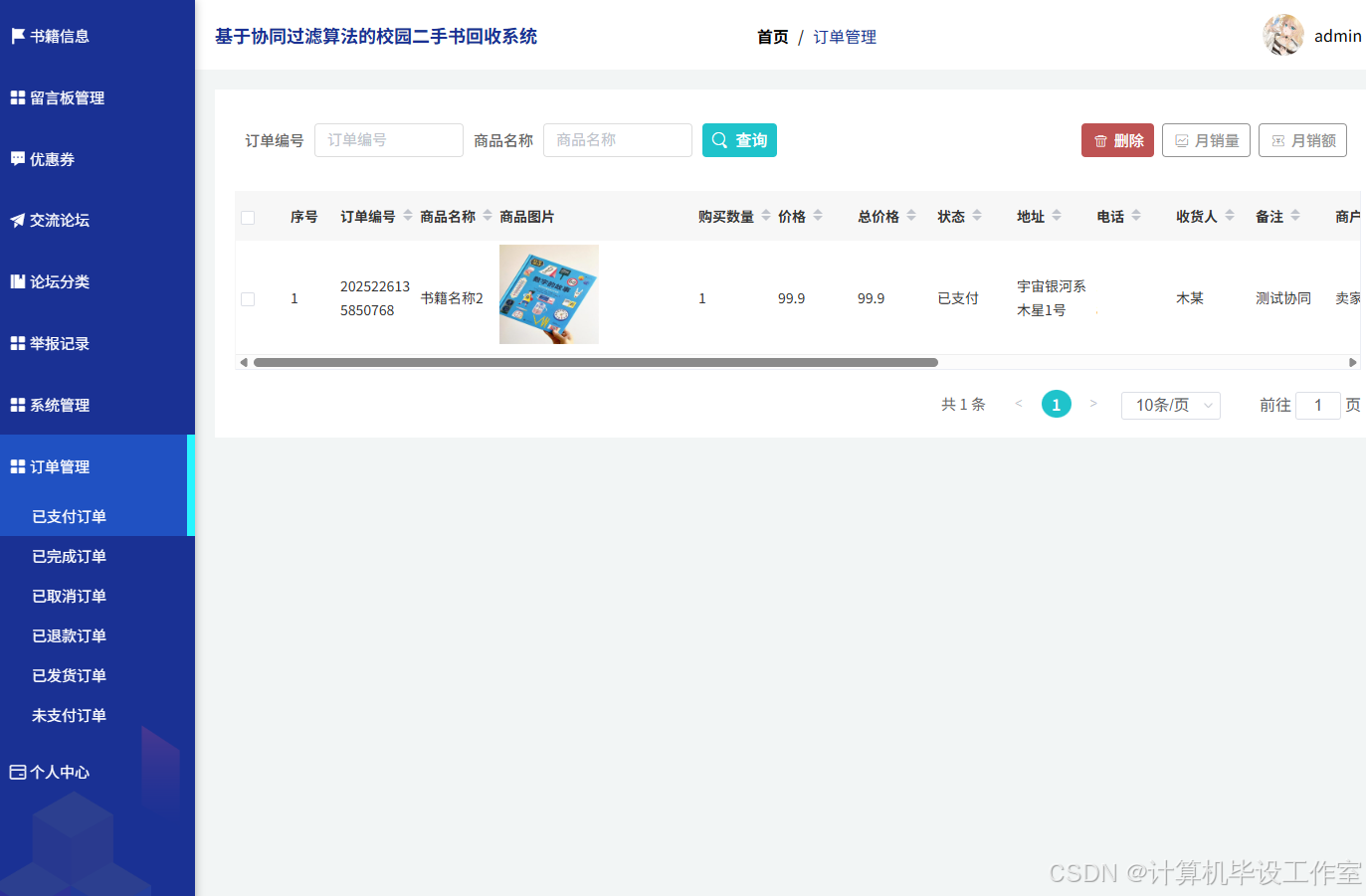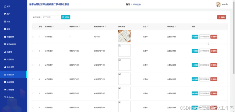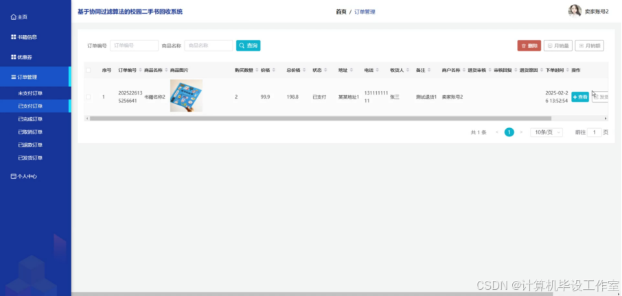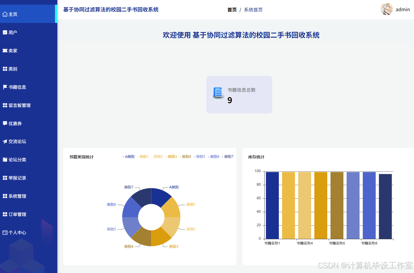 基于协同过滤算法的校园二手书回收系统(源码+数据库+毕业论文+ppt一整套齐全)java开发springboot+vue框架javaweb