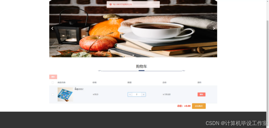 用户在购物车中可以查看已添加的商品,在此页面,用户能够调整购买数量、移除不需要的书籍或直接进行结算操作。