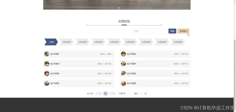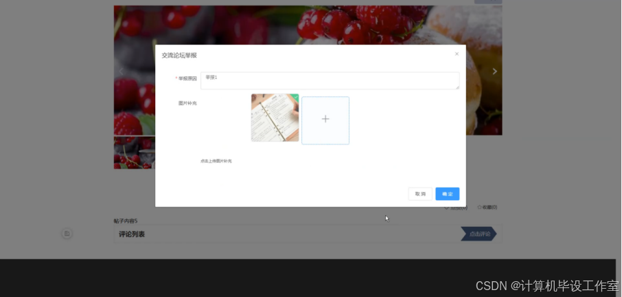 用户在交流论坛模块,可以查看论坛的帖子内容,可以对内容进行点赞、收藏和评论,另外,对违规的帖子有权限进行举报。也可以发布帖子,发表自己的意见。
