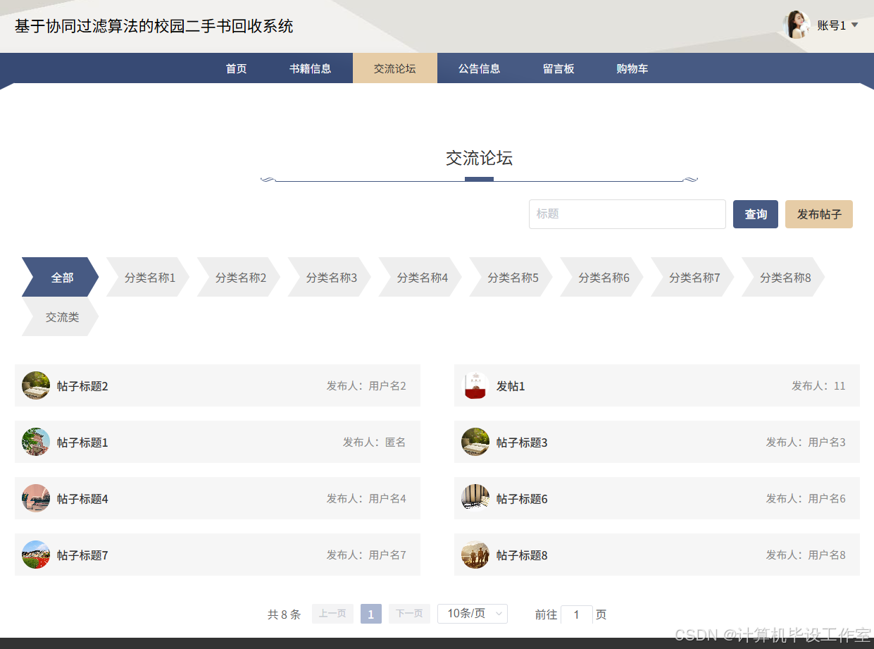 从用户的角度来看,本研究的意义在于极大地提升了他们在校园二手书市场的参与度和满意度。通过集成协同过滤算法的个性化推荐系统,用户能够更轻松地发现自己感兴趣的书籍,节省了寻找资源的时间,也降低了购书成本。此外,系统的互动功能如论坛交流、留言板等,不仅丰富了用户的社交体验,也为他们提供了一个表达意见和反馈问题的渠道。这样的设计鼓励了更多的学生参与到二手书交易中来,促进了书籍资源的有效利用。