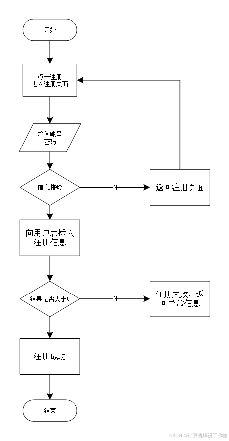 注册的过程,第一部分是账号的注册,第二部分是信息完善。在业务开展过程中,管理员可对用户信息进行修改等管理操作,注册流程如图3-4用户注册流程图所示。