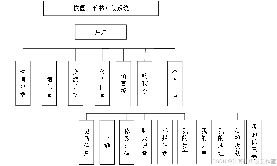 通过对应的功能做了需求分析以后该校园二手书回收系统各角色主要包括的功能说明如下: