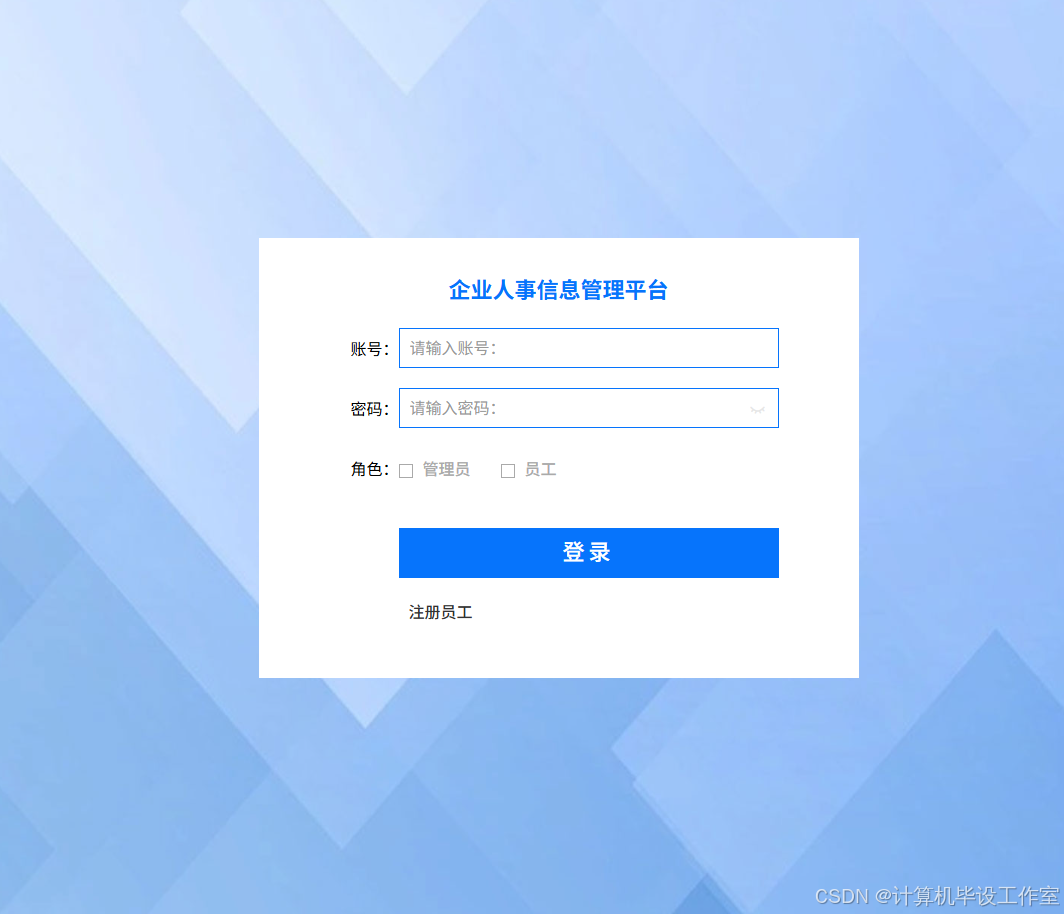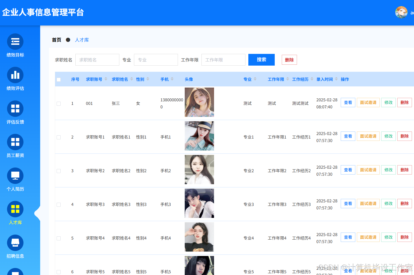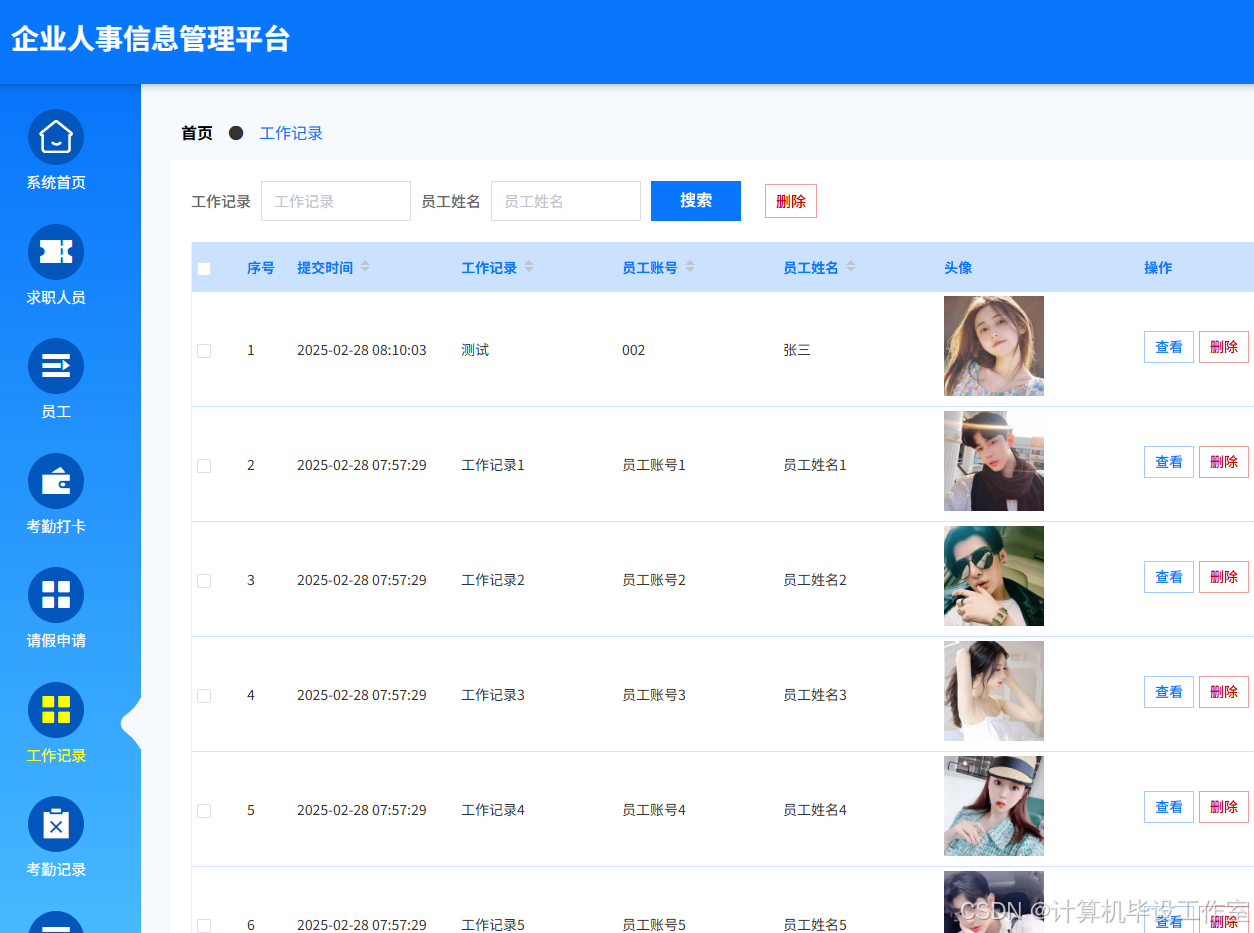传统企业人事信息管理存在效率低下、信息孤岛、管理不透明等问题,难以满足现代企业对高效、智能化管理的需求。因此,本课题采用SpringBoot框架和MySQL数据库技术,设计并实现了一个集求职招聘、员工管理、系统管理于一体的综合性企业人事信息管理平台。