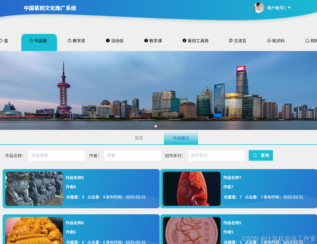 中国篆刻文化推广系统(源码+数据库+毕业论文+答辩ppt)java开发springboot+vue框架javaweb,可做计算机毕业设计或课程设计