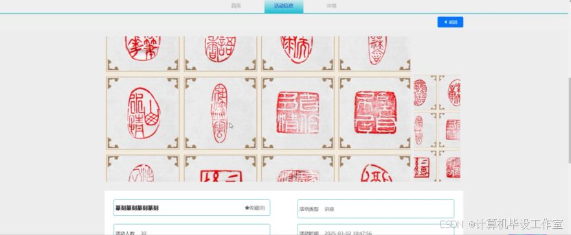 第三,活动推广:系统可以提供给用户一个了解篆刻活动的板块,可实现用户在线报名。