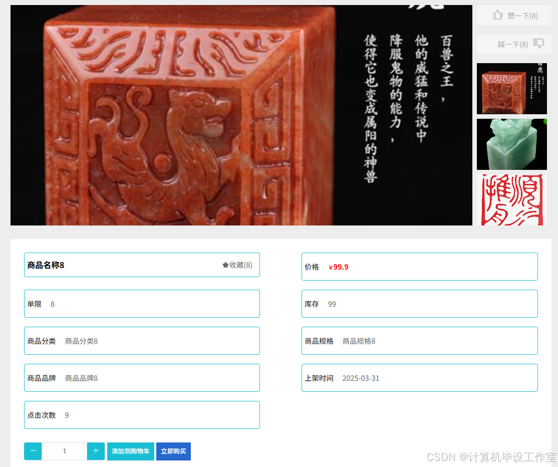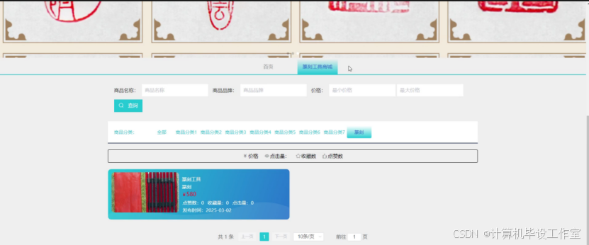 (6)篆刻工具商城。开设篆刻工具在线商店,提供篆刻工具、印章材料、相关书籍等商品的在线购买功能,方便用户获取篆刻所需物资。
