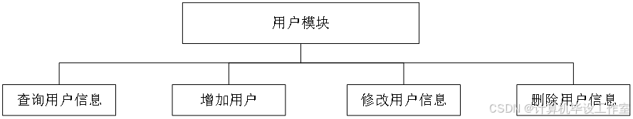 本系统的用户包括用户、教师以及管理员两个模块。虽然三种用户模块在功能上基本相同,但系统用户模块比教师以及管理员模块多了一个注册功能,所以用户模块的结构图为例进行分析,如下图: