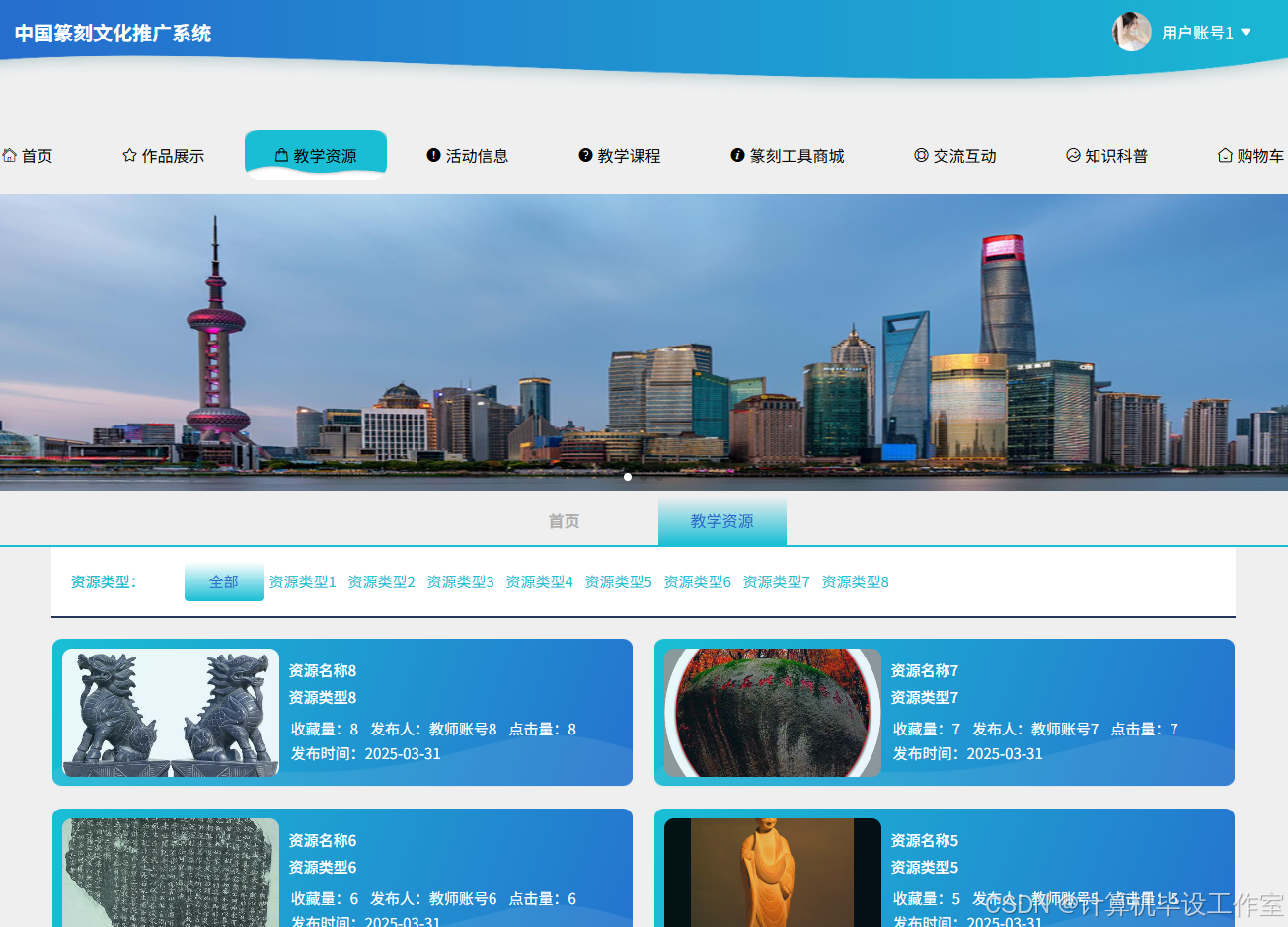 第二,课程资源:教师可以发布关于篆刻教学资源的板块,供用户进行查看和选择,支持在线选课,跟进学习进度、提交课程作业,发布课程成绩等。