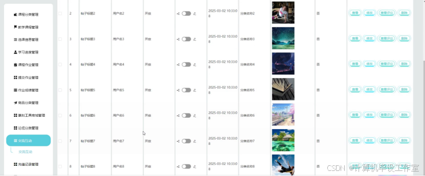 管理员在“论坛”界面可以对用户发布的论坛评论进行查看和管理,删除一些用户违规的帖子内容,具体的实现界面如下图: