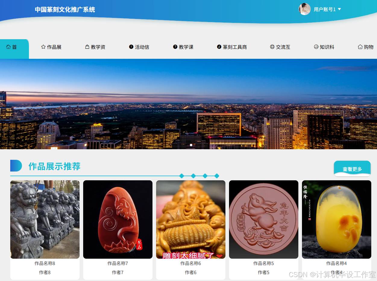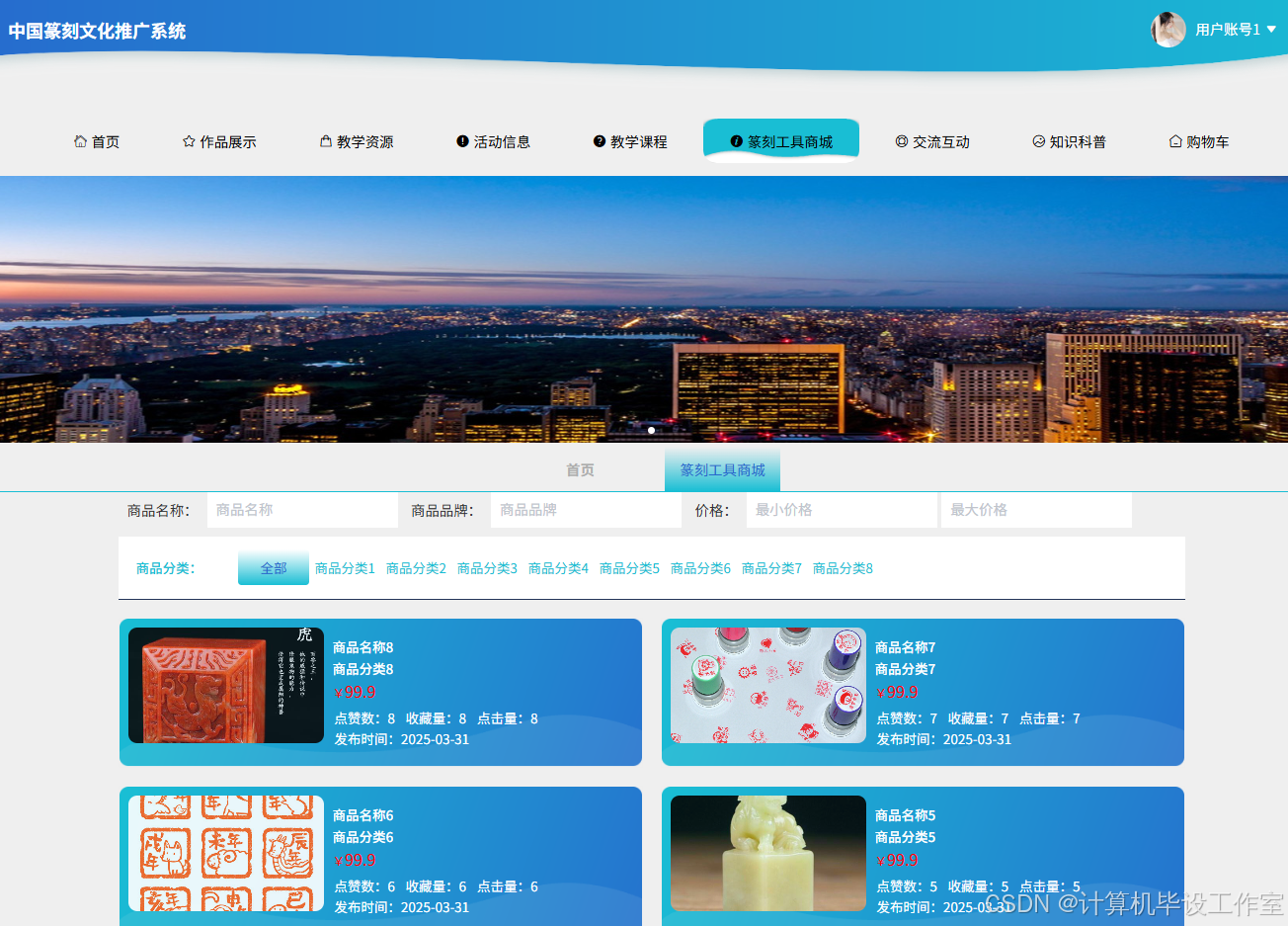 关键词:中国篆刻文化推广系统;教学课程;交流互动;购物车
