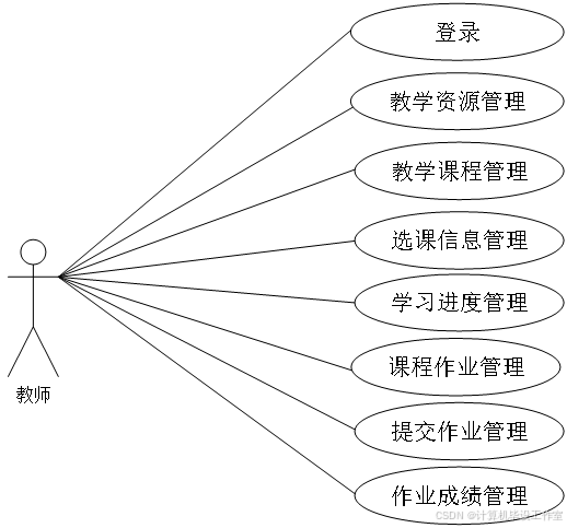 中国篆刻文化推广系统中的教师功能需求:通过教学资源管理,教师可以上传、更新和组织各种学习资料。教学课程管理允许教师设计课程结构,并安排上课时间表。选课信息管理使教师能够查看学生的选课情况。学习进度管理帮助教师跟踪每位学生的学习进展。课程作业管理和提交作业管理让教师可以布置作业、接收学生提交的作品,并对作业进行分类整理。作业成绩管理则便于教师评估学生作业的质量,记录并发布成绩。