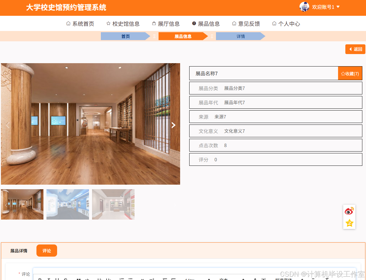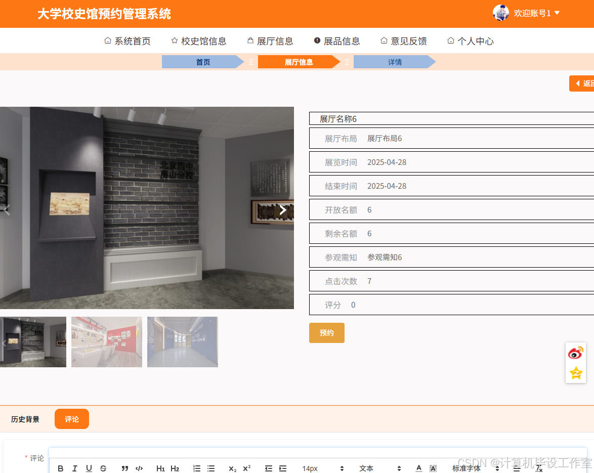 | 5. 用户对展厅信息进行评论和评分 | 评论、评分提交成功,页面显示用户评论 | 与预期结果一致 | |