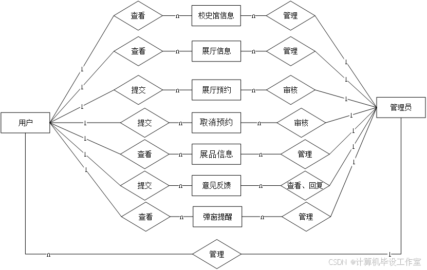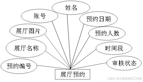 下面是根据大学校史馆预约管理系统总E-R关系图得出的很多实体图,如下列出。