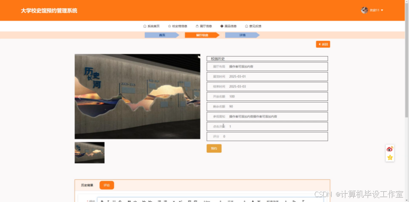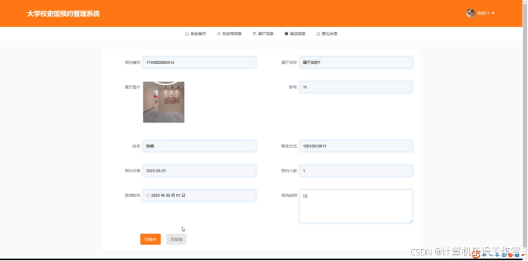 大学校史馆预约管理系统(源码+数据库+毕业论文+答辩ppt)java开发springboot+vue框架javaweb,可做计算机毕业设计或课程设计