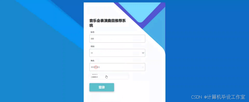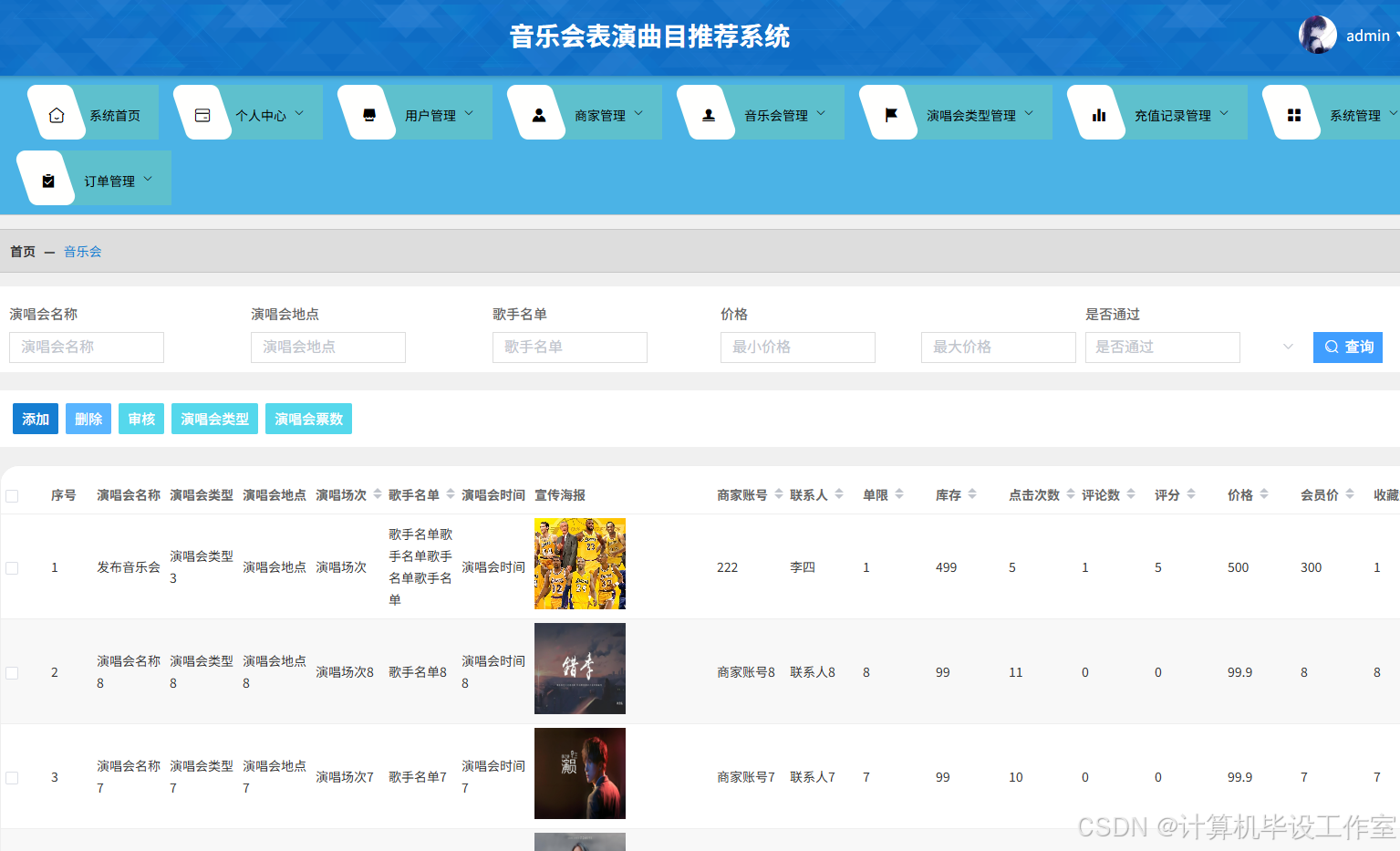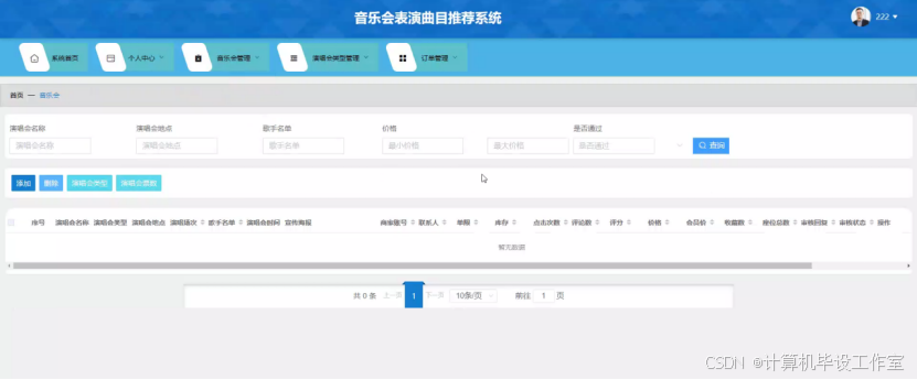音乐会表演曲目推荐系统_音乐会购票系统(源码+数据库+毕业论文+开题报告+任务书+答辩ppt)java开发springboot+vue框架javaweb,可做计算机毕业设计或课程设计