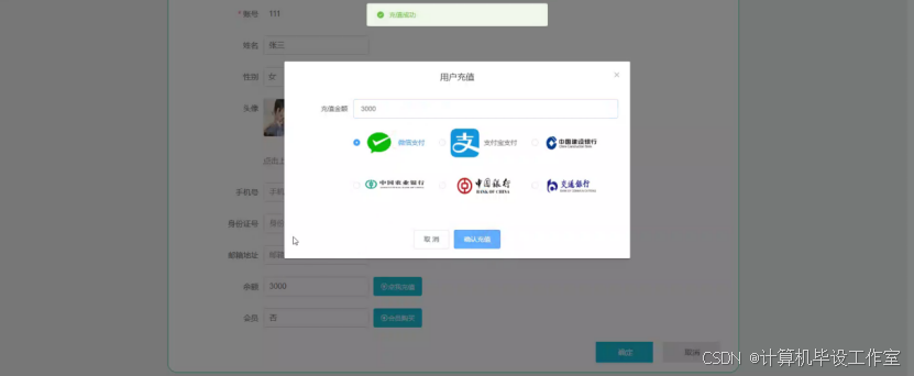 充值记录管理模块允许管理员查看所有用户的充值情况,对充值数据进行维护管理。