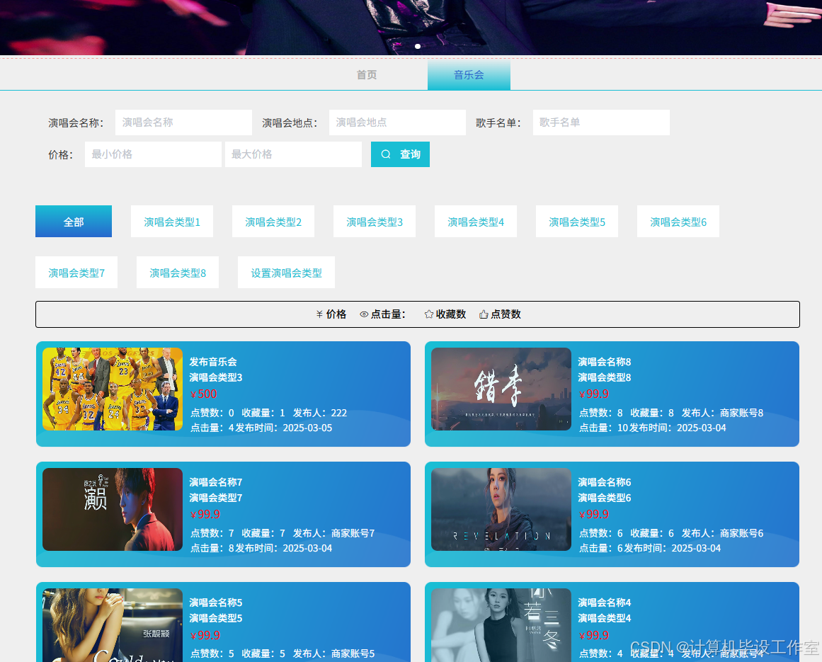 商家可以在音乐会管理界面中轻松发布演唱会信息,包括输入演唱会的时间、地点、歌手名单、票价等基本信息。通过这一便捷的管理系统,商家不仅能有效推广演唱会,还能与潜在观众建立更紧密的联系。