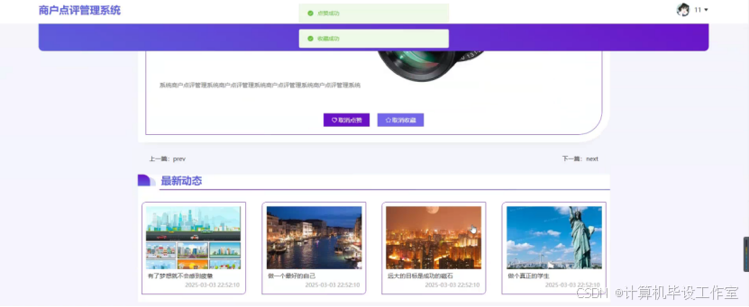 从消费者角度出发,该系统通过提供详尽的商户信息和真实的用户评价,帮助消费者做出更加明智的选择。例如,商户推荐功能能够根据用户的偏好和历史行为推荐合适的商家,使消费者更容易发现符合自己需求的服务或产品。此外,点赞和收藏功能不仅方便用户标记自己喜欢的商户,还能作为未来参考的重要依据,增强了用户体验的连续性和便捷性。系统的互动特性,如评论区和点赞功能,促进了社区内的交流与分享,营造了一个积极、透明的消费环境。