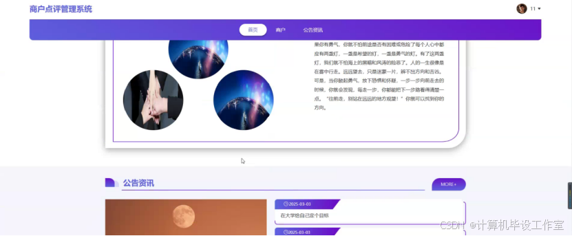 关键词:商户点评管理系统;Vue;SpringBoot;MySQL