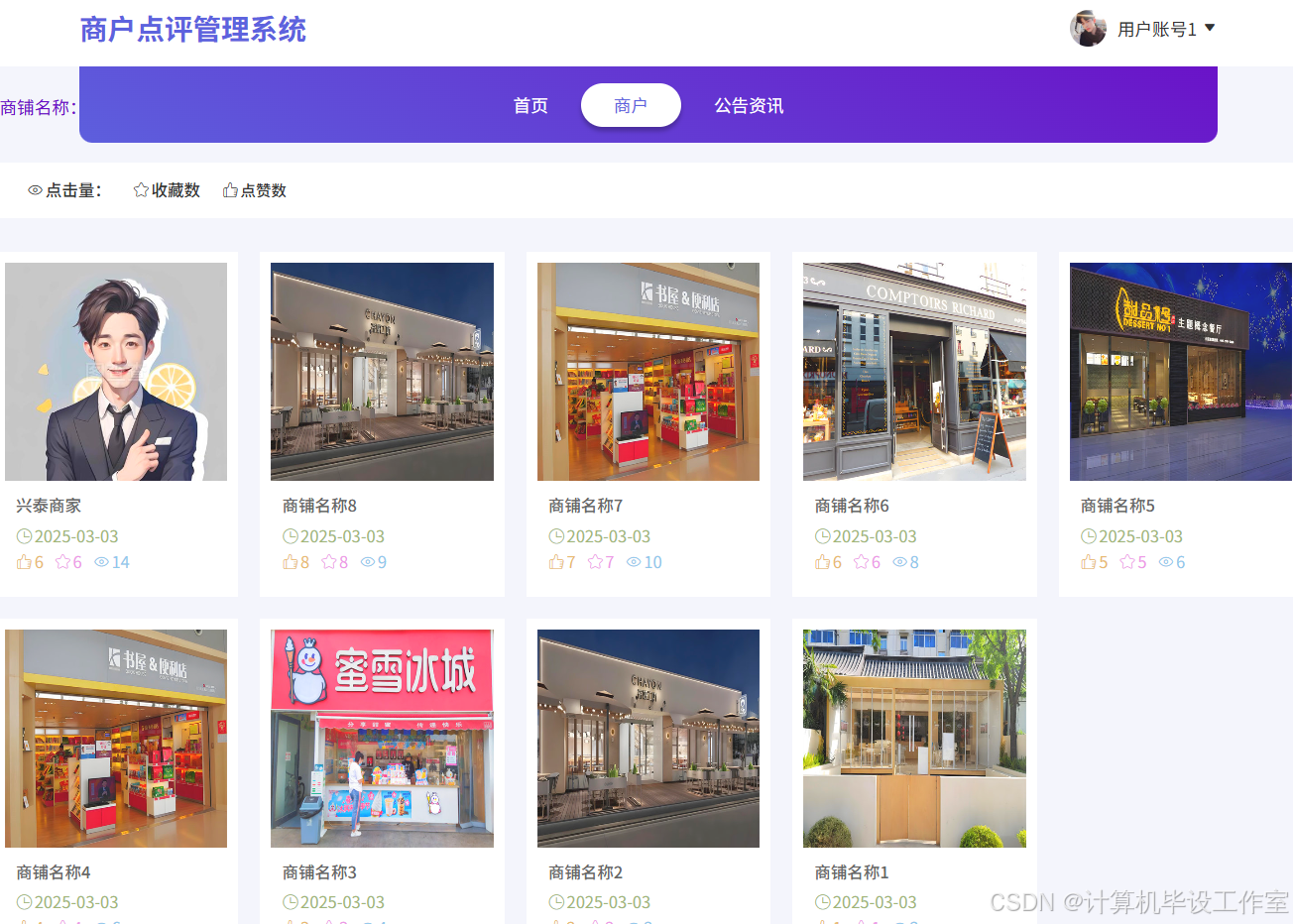 商户点评管理系统(源码+数据库+毕业论文+开题任务书+ppt一整套齐全)java开发springboot+vue框架javaweb,可做计算机毕业设计或课程设计