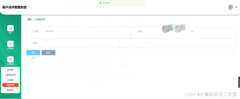 在轮播图管理模块,管理员可以对轮播图进行设置管理。
