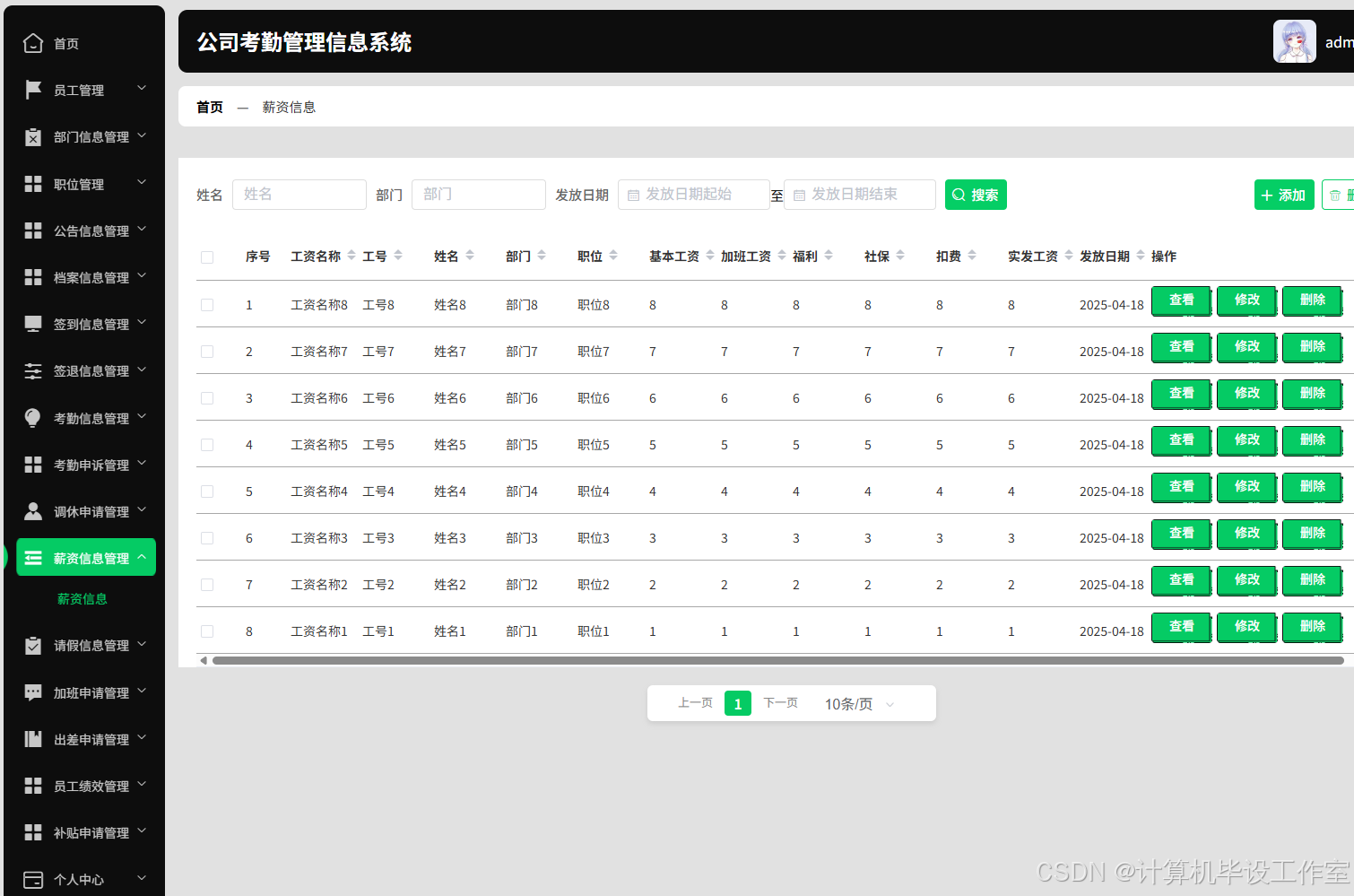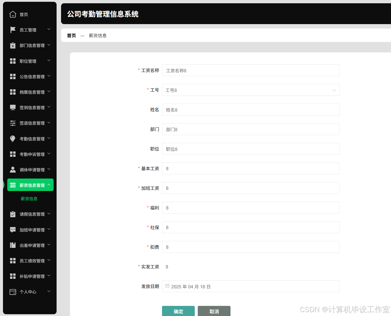 - 薪资信息管理:维护员工薪资信息,支持薪资计算。