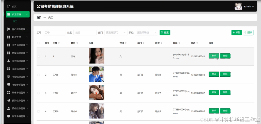 公司考勤管理系统(源码+数据库+毕业论文一整套齐全)java开发springboot+vue框架javaweb,可做计算机毕业设计或课程设计