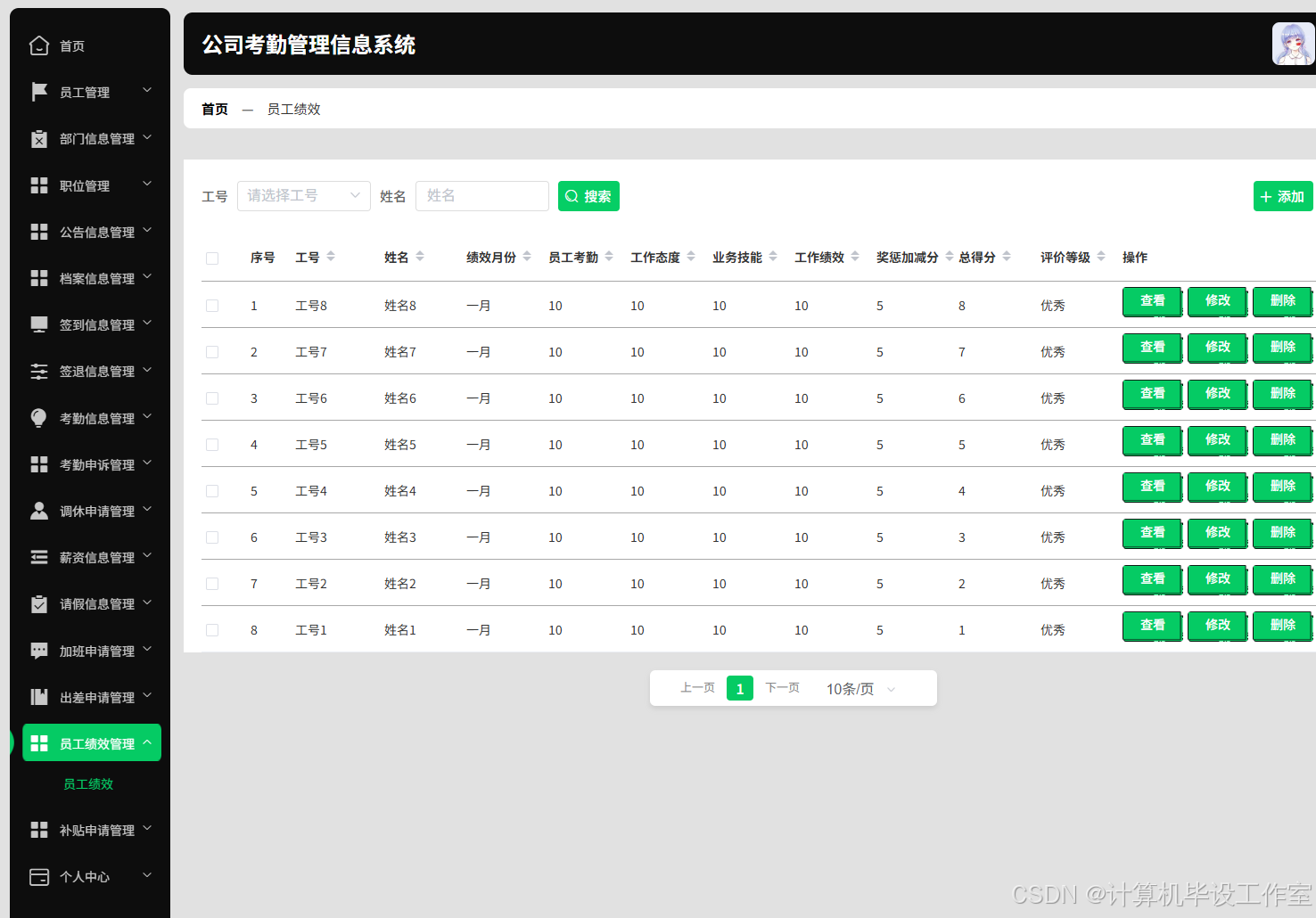- 员工绩效管理:查看个人绩效,了解工作表现。