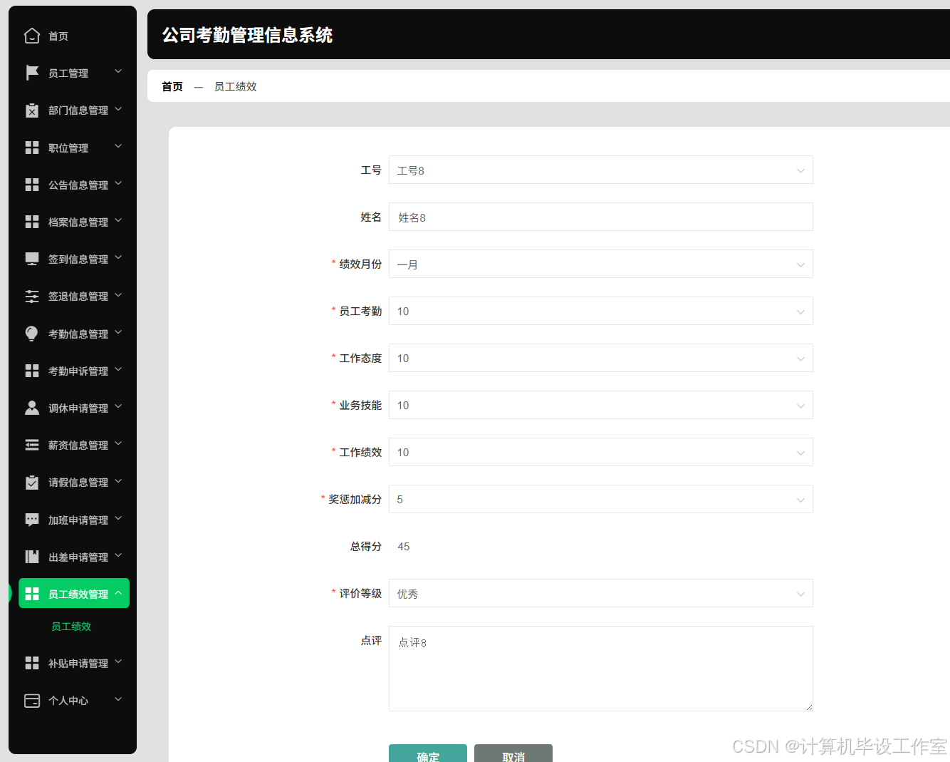 - 员工绩效管理:评估员工绩效,支持绩效考核。