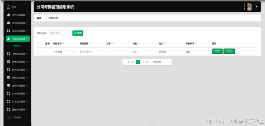 关键词:考勤管理;考勤申诉;Spring Boot框架
