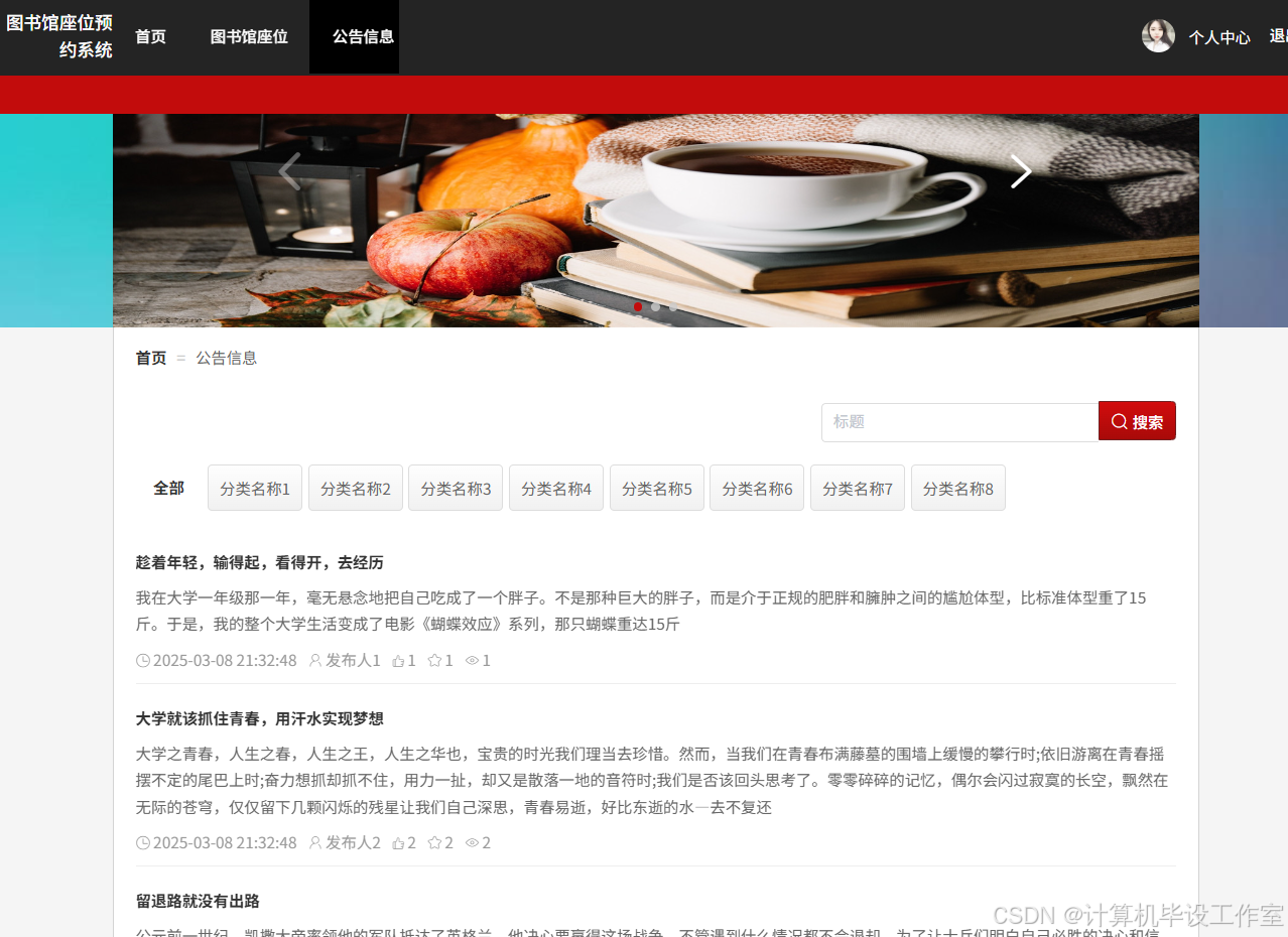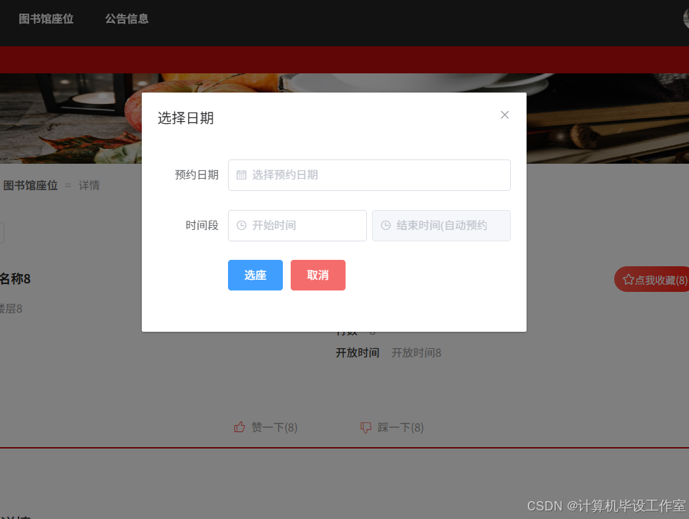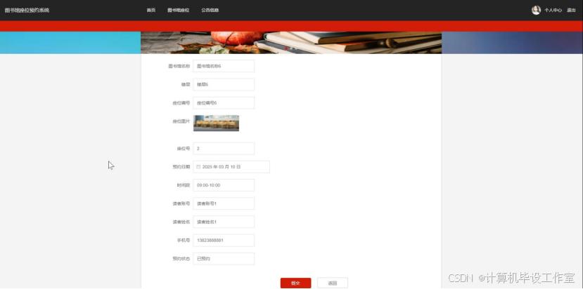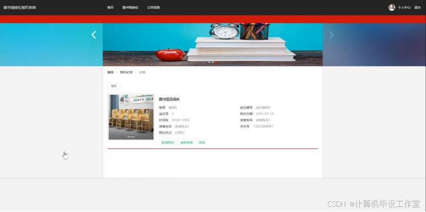 图书馆座位预约系统(源码+数据库+毕业论文+开题报告+答辩ppt)java开发springboot+vue框架javaweb,可做计算机毕业设计或课程设计
