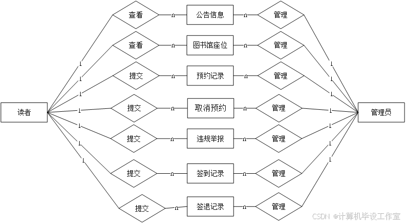为解决上述问题,本课题设计了一个基于Java Web的图书馆座位预约系统。该系统采用Spring Boot框架作为后端支持,利用Vue.js与HTML构建动态前端界面,使用MySQL数据库存储数据。本系统主要包含用户注册与登录、座位信息查询与预约、取消预约、违规举报与签到签退等功能模块。同时,管理员也可以对读者信息和座位信息进行有效管理,确保系统的正常运行和座位资源的合理利用。