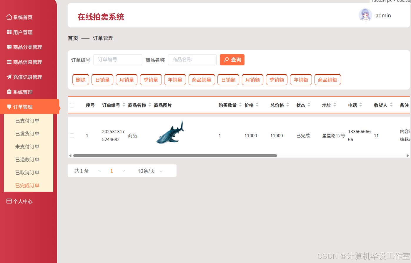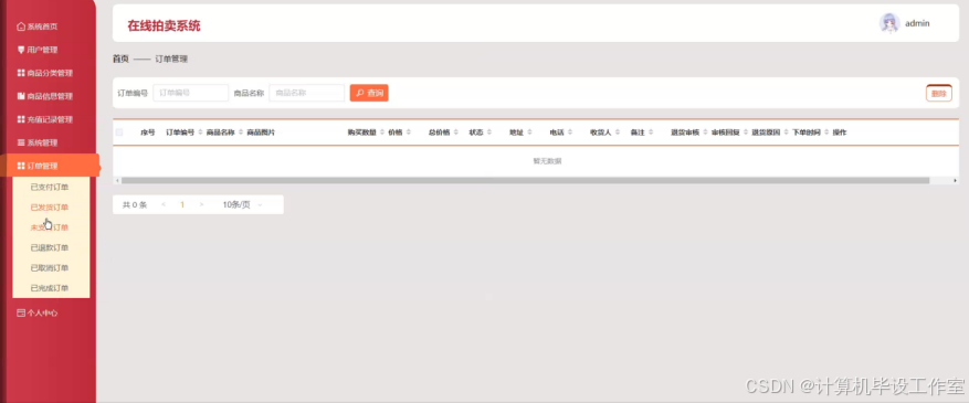 该功能允许管理员查看和处理所有已成交的订单,包括确认付款、安排发货和更新物流状态,确保交易流程顺利进行并提高客户满意度。管理员可以对所有的订单信息进行维护和管理。