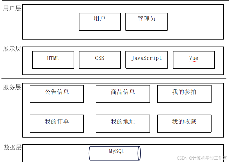国外在线拍卖系统研究聚焦于提升系统安全性、透明度及应用广度,尤其是基于区块链等新兴技术构建拍卖系统。2023年,Sivalakshmi P等人在农业产品领域基于区块链提出智能拍卖流模型,增强供应链透明度,解决农业供应链中中介成本高、资源有限及产销脱节等问题,该系统通过直接连接农民与供应商实现即时支付和透明交易信息,有助于提升农业供应链的效率和公平性。2022年,Sheharyar Khan与Zeeshan设计的在线拍卖系统则侧重于提升安全性和灵活性,该系统通过优化网络结构与安全机制实现动态竞价及数据保护,以保障用户交易的高效性与安全性。2020年,Pandian Asha等人开发了一款基于Web的在线拍卖系统,系统结构分为用户端与管理员端,管理员可通过后台管理竞价过程及用户,系统支持通过邮件发送竞拍结果以增强互动性,系统在集成安卓应用后,通过分级管理拍品展示方式提升了用户体验和系统灵活性。上述研究表明,国外学者已逐步推动拍卖系统从基本交易功能向安全与灵活性并重的方向发展,不断丰富在线拍卖系统的实际应用场景。