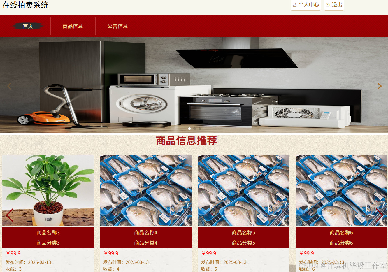 (4)商品信息:用户可以浏览详细的拍卖品资料,包括图片、描述、起拍价等,同时支持搜索和筛选功能以找到心仪的商品。