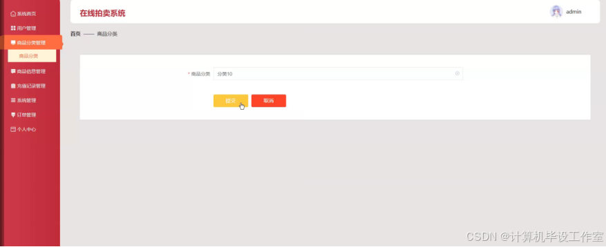 (3)商品分类管理:管理员可以在此模块创建、编辑或删除商品类别,组织商品结构,确保商品展示逻辑清晰,便于用户浏览和搜索。