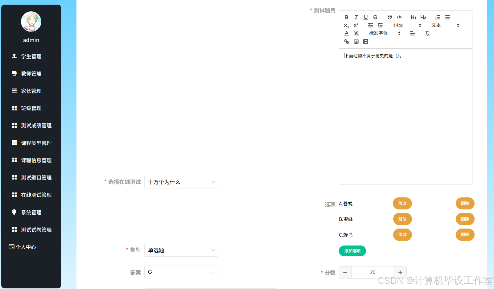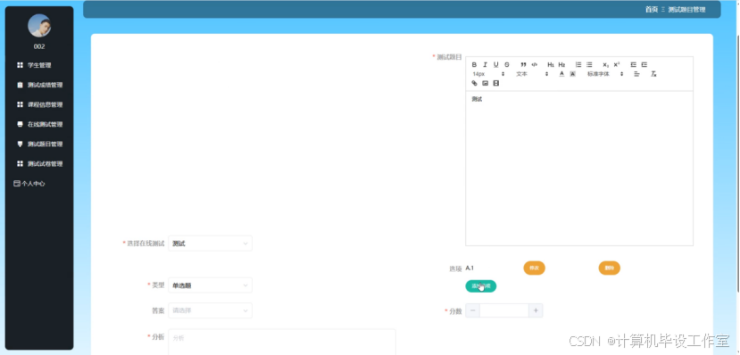 测试题目添加界面如图5-12所示。