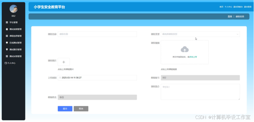 图5-10课程信息添加界面