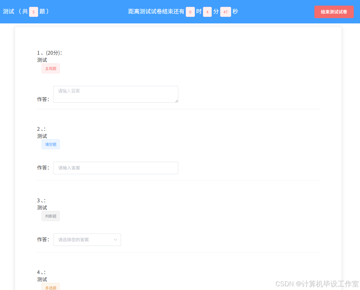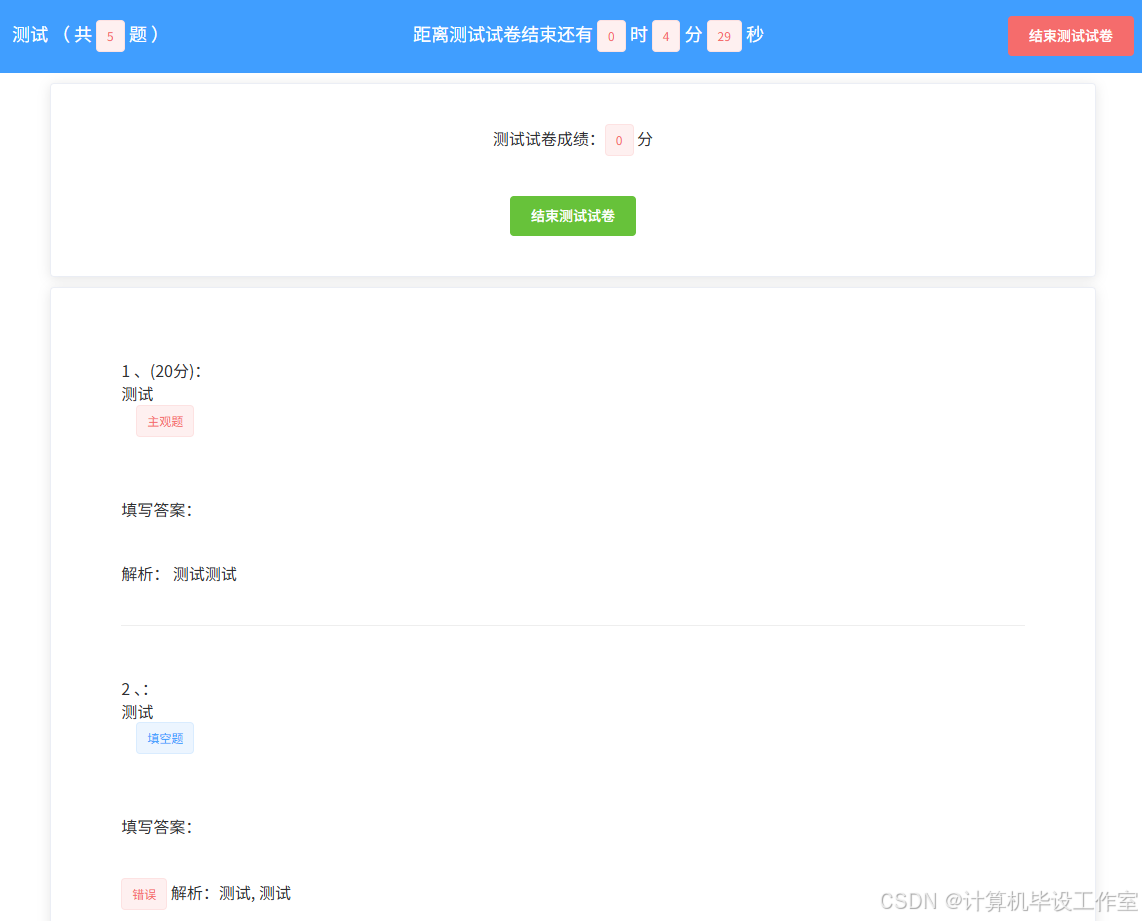 测试试卷记录界面如图5-6所示。