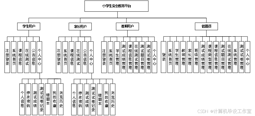 本系统分为学生、家长、教师、管理员4个角色