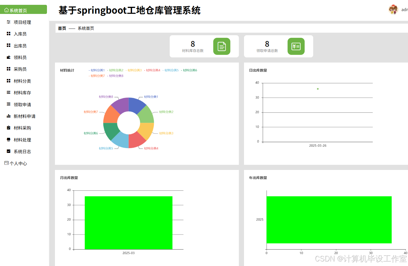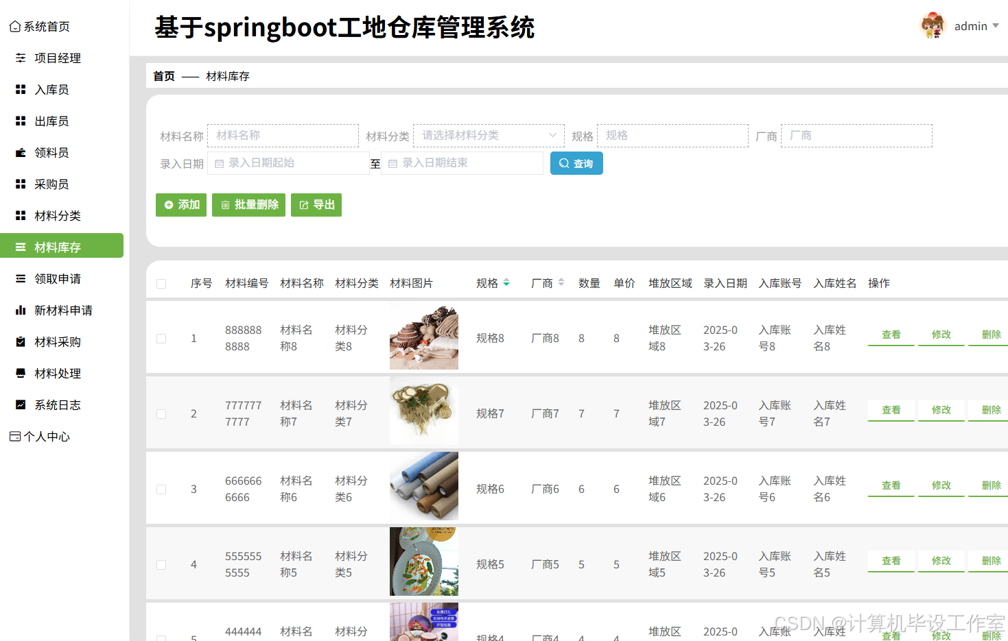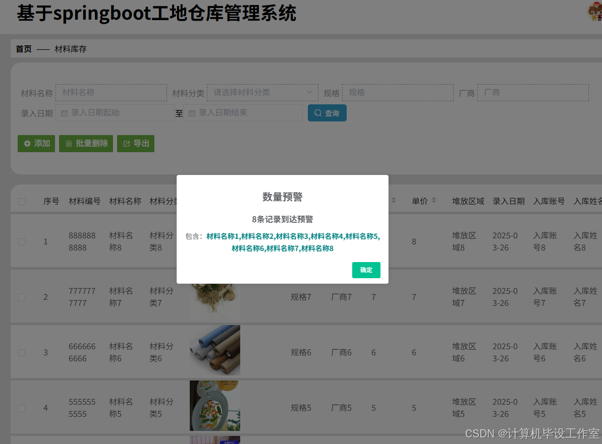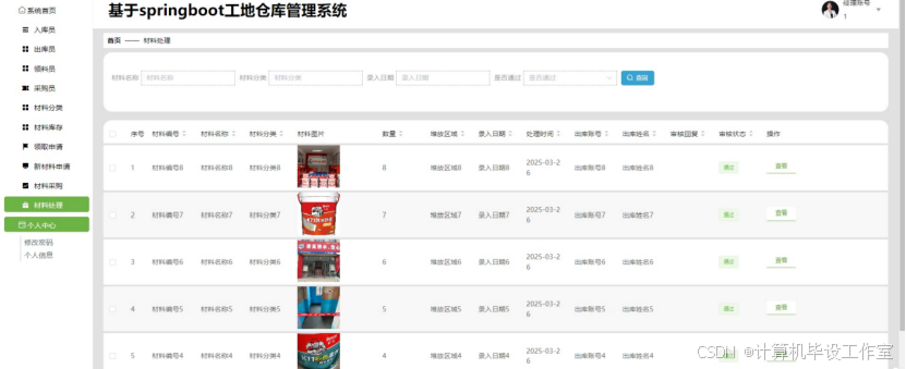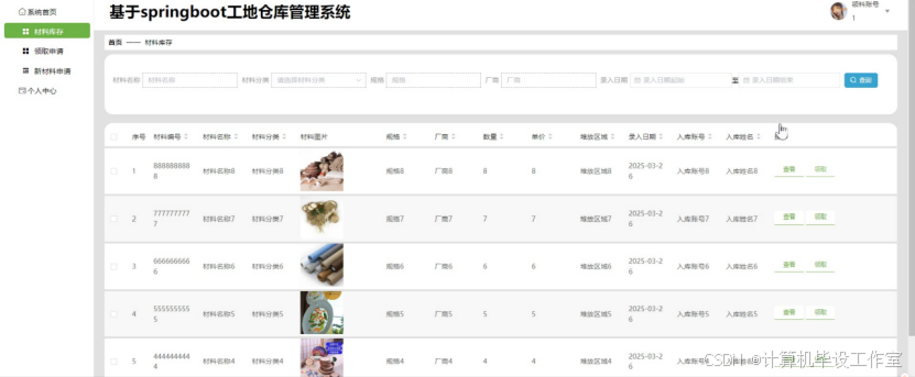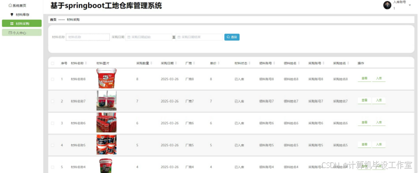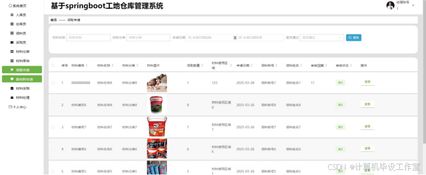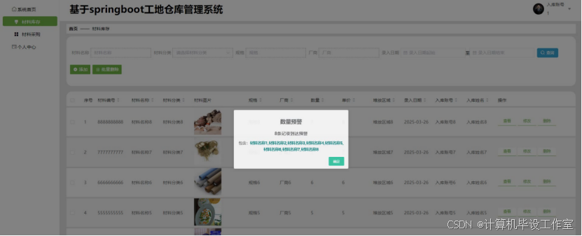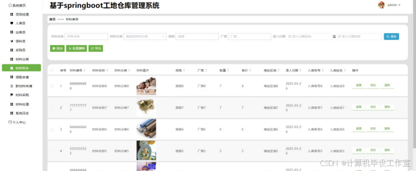 工地仓库管理系统(源码+数据库+毕业论文+开题+任务书+答辩ppt)java开发springboot+vue框架javaweb,可做计算机毕业设计或课程设计