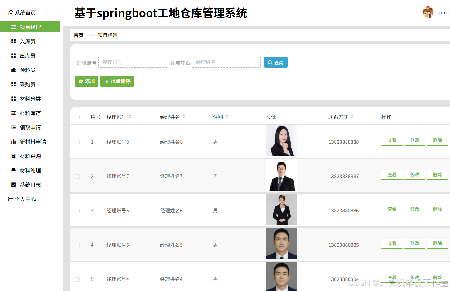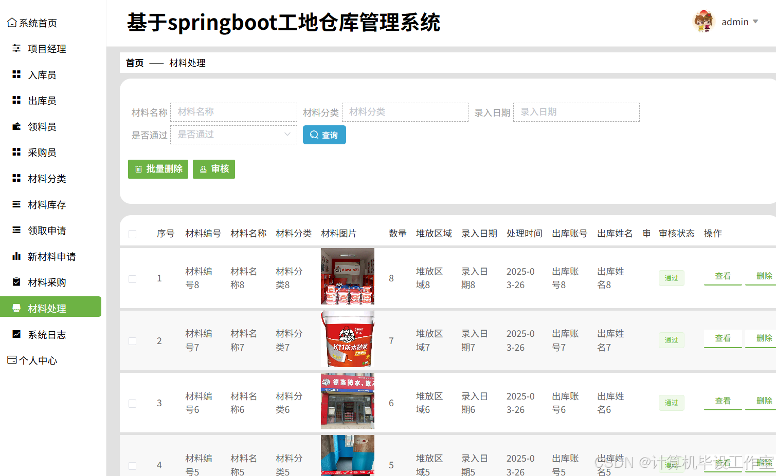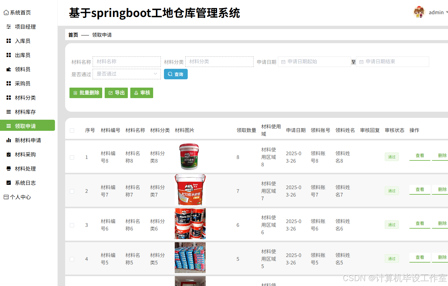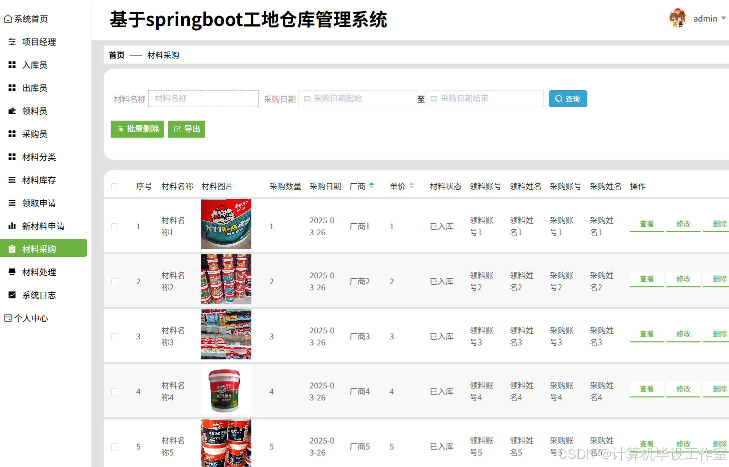 工地仓库管理系统(源码+数据库+毕业论文+开题+任务书+答辩ppt)java开发springboot+vue框架javaweb,可做计算机毕业设计或课程设计