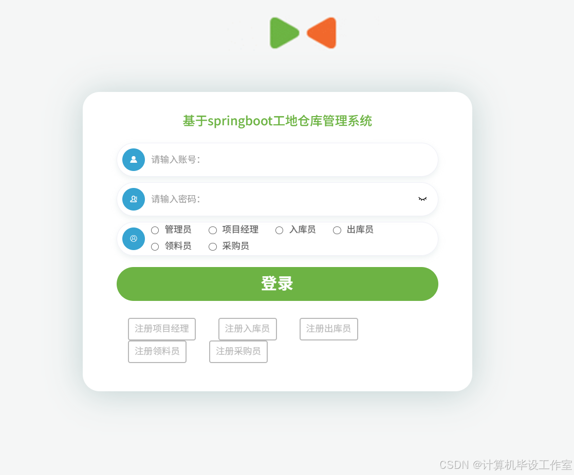 本系统分为采购员、领料员、出库员、入库员、项目经理、管理员6个角色