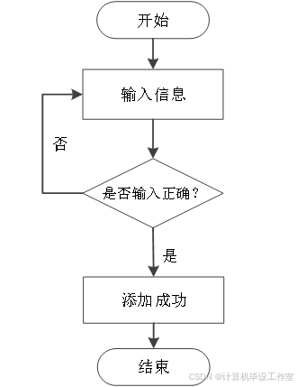 用户可以添加信息,内容没有问题之后按下确定键就添加成功了。添加信息流程图如图4-3所示.